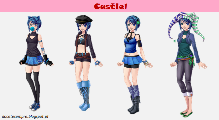 No look do Castiel, no 1 onde eu consigo essa saia azul
